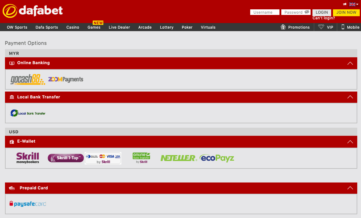 Please note that currently, eWallets are the quickest way to withdraw from Dafabet. Credit Cards usually take 3-5 working days. One advantage is there is currently no daily, weekly or monthly limits to how much you can withdraw per transactions unless using Neteller or Skrill, which have a £31,000 and £60,000 limit respectively.